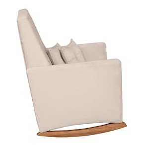A Poltrona de Amamentação Ana com Balanço Pés Canoa e Puff é perfeita para transformar os momentos com o bebê em instantes de conforto e aconchego. Com estrutura em madeira de eucalipto, revestimento em tecido e espuma D-23, oferece excelente sustentação com percintas elásticas. O design é valorizado pelo detalhe com botão capitonê no encosto e pelas duas almofadas que acompanham a peça. A base com pés tipo canoa em madeira maciça garante um balanço suave, enquanto o puff com pés retrô completa o visual e suporta até 120kg.