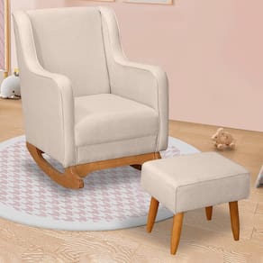 A Poltrona de Amamentação Áquila com Balanço Pé Canoa e Puff é ideal para proporcionar conforto nos momentos mais especiais com o bebê. Com estrutura em madeira de eucalipto e espuma D-23, oferece maciez e firmeza na medida certa. Possui balanço suave com pés tipo canoa e assento com percintas elásticas de alta resistência. Acompanha puff com pés retrô, complementando o aconchego e a funcionalidade, suporta até 120kg.