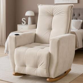 A poltrona possui um balanço suave em sua base, e um encosto alto com espuma de excelente densidade e estrutura sólida de madeira.