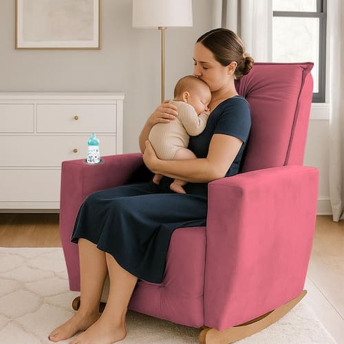 Poltrona de Amamentação Balanço Agatha Puff Poltrona Agatha amamentação proporciona todo o conforto e aconchego que a família precisa nesta fase tão especial, e encanta pelo seu estilo sofisticado. Feita com matéria-prima de alta qualidade a poltrona possui estofado revestido por tecido de toque suave que proporciona aconchego para os momentos de amamentação. O puff quadrado traz conforto e beleza para a rotina da mamãe, e ajuda no descanso para pernas e pés tornando o momento ainda mais confortável. A poltrona possui um balanço suave em sua base, e um encosto alto com espuma de excelente densidade e estrutura sólida de madeira.