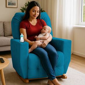Poltrona Antonela amamentação proporciona todo o conforto e aconchego que a família precisa nesta fase tão especial, e encanta pelo seu estilo sofisticado. Feita com matéria-prima de alta qualidade a poltrona possui estofado revestido por tecido de toque suave que proporciona aconchego para os momentos de amamentação. O puff quadrado traz conforto e beleza para a rotina da mamãe, e ajuda no descanso para pernas e pés tornando o momento ainda mais confortável. A poltrona possui um balanço suave em sua base, e um encosto alto com espuma de excelente densidade e estrutura sólida de madeira.