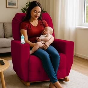 Poltrona Antonela amamentação proporciona todo o conforto e aconchego que a família precisa nesta fase tão especial, e encanta pelo seu estilo sofisticado. Feita com matéria-prima de alta qualidade a poltrona possui estofado revestido por tecido de toque suave que proporciona aconchego para os momentos de amamentação. O puff quadrado traz conforto e beleza para a rotina da mamãe, e ajuda no descanso para pernas e pés tornando o momento ainda mais confortável. A poltrona possui um balanço suave em sua base, e um encosto alto com espuma de excelente densidade e estrutura sólida de madeira.