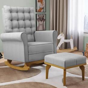 O móvel ideal para você que procura conforto, qualidade e sofisticação. Confira a Poltrona de Amamentação Balanço e Puff Base de Madeira Brenda G05 Linho Cinza Escuro, da Mpozenato!