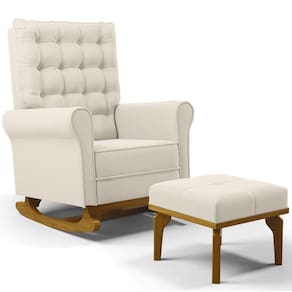 O móvel ideal para você que procura conforto, qualidade e sofisticação. Confira a Poltrona de Amamentação Balanço e Puff Base de Madeira Brenda G05 Veludo Creme, da Mpozenato!