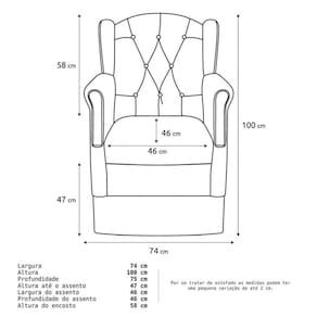 Poltrona: 67 x 108 x 74 cm.