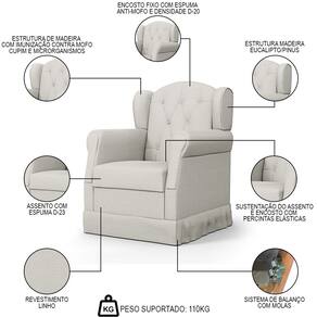 Poltrona de Amamentação Balanço Letícia Linho Off White - Phoenix