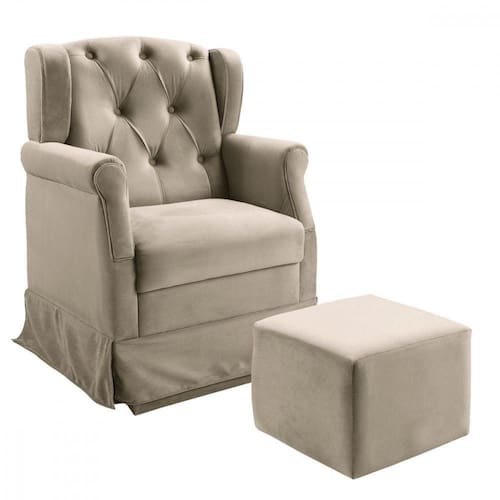 Especificacoes: Material do Estofado: Suede Funcao: Balanco para relaxamento e Amamentacao Inclui Puff: Sim Estrutura: Madeira e metal de alta resistencia