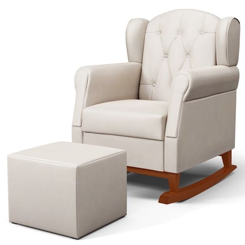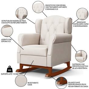 A Poltrona de Amamentação Base de Madeira Balanço e Puff Lucy P04 Suede Bege - Mpozenato é a escolha ideal para as mamães que buscam conforto, beleza e qualidade. Ela possui uma estrutura de madeira de reflorestamento com imunização contra mofo, cupim e microrganismos, garantindo maior durabilidade e resistência. Além disso, vem com um puff para apoiar os pés e relaxar. A sustentação do assento e encosto é feita com percintas elásticas que proporcionam mais maciez e ergonomia. A base canoa com balanço permite um movimento suave e relaxante, ideal para ninar o bebê ou descansar após um dia cansativo. A poltrona tem um design moderno e elegante que combina com qualquer ambiente. Ela está disponível em várias cores para você escolher a que mais combina com o seu estilo. Não perca essa oportunidade de ter uma Poltrona de Amamentação e Descanso na sua casa. Você vai se surpreender com o conforto e a qualidade dessa poltrona. Compre já!