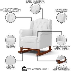 A Poltrona de Amamentação Base Madeira Balanço Letícia Sintético Branco Phoenix Baby é a escolha ideal para as mamães que buscam conforto, beleza e qualidade. Ela possui uma estrutura de madeira de reflorestamento com imunização contra mofo, cupim e microrganismos, garantindo maior durabilidade e resistência. A sustentação do assento e encosto é feita com percintas elásticas que proporcionam mais maciez e ergonomia. O Tecido Sintético é fácil de limpar e tem um toque suave na pele. A base canoa com balanço permite um movimento suave e relaxante, ideal para ninar o bebê ou descansar após um dia cansativo. A poltrona tem um design moderno e elegante que combina com qualquer ambiente. Ela está disponível em para você escolher a que mais combina com o seu estilo. Não perca essa oportunidade de ter uma Poltrona de Amamentação e Descanso na sua casa. Você vai se surpreender com o conforto e a qualidade dessa poltrona. Compre já!