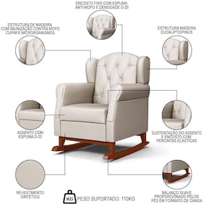 Madeira Eucalipto/PinusA Poltrona de Amamentação Base Madeira Balanço Lucy P04 Sintético Bege Mpozenato é a escolha ideal para as mamães que buscam conforto, beleza e qualidade. Ela possui uma estrutura de madeira de reflorestamento com imunização contra mofo, cupim e microrganismos, garantindo maior durabilidade e resistência. A sustentação do assento e encosto é feita com percintas elásticas que proporcionam mais maciez e ergonomia. O Tecido Sintético é fácil de limpar e tem um toque suave na pele. A base canoa com balanço permite um movimento suave e relaxante, ideal para ninar o bebê ou descansar após um dia cansativo. A poltrona tem um design moderno e elegante que combina com qualquer ambiente. Ela está disponível em para você escolher a que mais combina com o seu estilo. Não perca essa oportunidade de ter uma Poltrona de Amamentação e Descanso na sua casa. Você vai se surpreender com o conforto e a qualidade dessa poltrona. Compre já!
