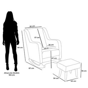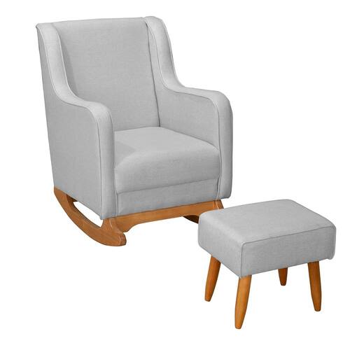 Poltrona de Amamentação com Balanço e Puff Ariely Linho Cinza M13 - D`Rossi