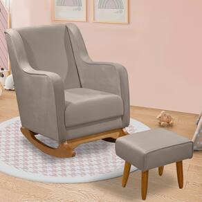 Poltrona de Amamentação com Balanço e Puff Ariely Veludo M13 - D`Rossi