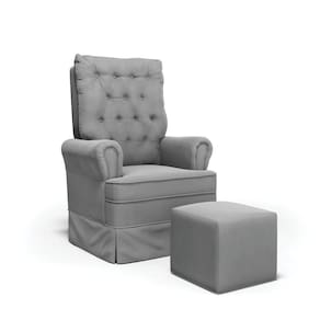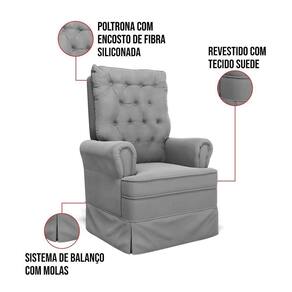 Poltrona De Amamentação Com Balanço E Puff Laura Veludo Cinza Tb122 Base De Madeira - D`rossi