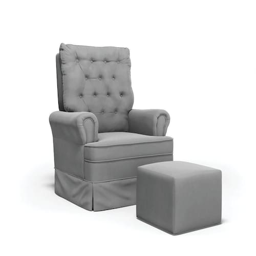Poltrona De Amamentação Com Balanço E Puff Laura Veludo Cinza Tb122 Base De Madeira - D'rossi
