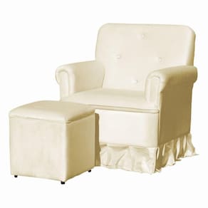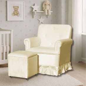 Poltrona De Amamentação Com Balanço E Puff Lavínia Veludo Veludo Bege