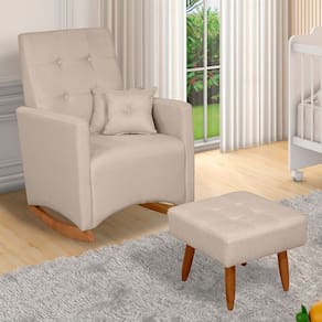 Montar o quartinho do bebê é uma tarefa especial e cheia de amor. Cada detalhe importa, desde a decoração até a escolha de móveis de alta qualidade que garantam conforto e funcionalidade. Entre os itens essenciais está a Poltrona de Amamentação, onde a mamãe passará momentos preciosos alimentando e ninando o bebê. Por isso, é fundamental escolher um modelo que una conforto, estilo e praticidade. A Poltrona de Amamentação Lizzi é a escolha perfeita para esse momento tão especial. No modelo balanço, ela proporciona um movimento suave que ajuda a acalmar o bebê, enquanto a mamãe pode relaxar. Acompanha 2 almofadas e um puff com pé palito que é ideal para apoiar os pés, garantindo descanso e ajudando a evitar inchaços. Além disso, o puff pode ser utilizado como um item decorativo no quarto. Com estrutura em madeira eucalipto reflorestada, a poltrona oferece grande resistência, suportando até 120 kg. Sua ergonomia é pensada para o bem-estar da mamãe, com encosto alto, braços na altura ideal para apoiar os cotovelos e evitar cansaço, além de assento e encosto com espumas D23 e D20 e persinta elástica, que garantem conforto duradouro. Possui botão capitonê encapados do mesmo revestimento da poltrona no Linho, um tecido macio ao toque e fácil de limpar, a Poltrona Lizzi vem no tom Bege, uma cor elegante que combina perfeitamente com quartos infantis, realçando a decoração do espaço. Aproveite e garanta móveis de qualidade para deixar esse momento ainda mais especial!