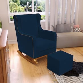 Poltrona de Amamentação com Balanço e Puff Mavie L02 Suede Azul Marinho - Lyam Decor