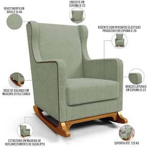 Poltrona de Amamentação com Balanço Mavie L02 Bouclê Oliva - Lyam Decor - Verde