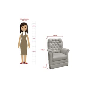 Medidas Poltrona Altura Total: 108 cm Largura Total: 82 cm Profundidade Total: 84 cm Espessura: 35 cm Largura do Assento: 45 cm Profundidade do Assento: 43 cm Puff Altura - 46cm Largura - 47cm Profundidade - 47cm Características do produto A estrutura interna é feita em madeira de eucalipto reflorestada. Assento em Espuma - D23 com pescintas elasticas encosto em espuma - Fixo D20 com pescintas elasticas Produto montado