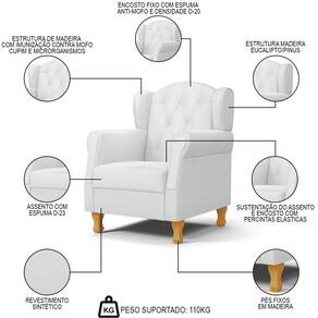 Conteúdo da Embalagem: 1 Poltrona, 4 Pés de Madeira.