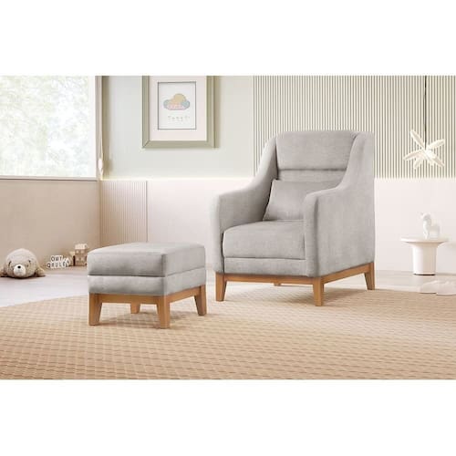 O conjunto de poltrona e puff Áquila proporciona conforto ergonômico tanto para a mãe quanto para o bebê durante o processo de amamentação, o que é fundamental para sessões prolongadas. Além disso, sua estrutura em madeira e percintas elásticas é projetada para promover uma postura adequada, ajudando a evitar desconfortos físicos. O estofamento de espuma D28 torna a amamentação mais agradável e relaxante, promovendo o vínculo entre mãe e bebê. Esses benefícios combinados fazem da poltrona de amamentação um investimento valioso, proporcionando conforto, praticidade e fortalecendo o elo afetivo entre eles. Acompanha Almofadas extras: 01 Acompanha Puff: Sim Almofada do assento: Fixa Almofada do encosto: Fixa Altura do assento até o chão: 44 cm Altura do Encosto: 57 cm Ambiente Principal: Quarto de Bebê Cor: Cinza Cor do Produto: Cinza Design Assinado: Não Enchimento do Assento: Espuma D-28 Enchimento do Braço: Espuma D-28 Enchimento do Encosto: Espuma D-28 Encosto para a Cabeça: Sim Estampado: Não Extensível: Não Firmeza do Assento: Médio Itens Inclusos: 1 Poltrona + 1 Puff Áquila, Manual de Montagem Linha ou Coleção: Áquila Manual de Montagem e Instalação: https://cdn2.madeiramadeira.com.br/atributo/zurc-interiores/2067066-5188-17189045919827.pdf Material da Estrutura: Madeira Eucalipto Material do Braço: Linho Modelo de Poltrona: Fixo Necessita Montagem: Não Origem do Produto: Nacional Peso: 30 kg Possui Apoio para Braços: Sim Possui Percintas Elásticas: Sim Possui Pés: Não Recomendações de Uso, Manutenção e Limpeza: Utilizar aspirador de pó, escova com cerdas macias ou limpeza a seco. Não utilizar produtos químicos, abrasivos ou limpeza a vapor. Evitar exposição prolongada ao sol. Suporta Até (kg): 120 kg Tecido Predominante: Linho Tipo de Assento: Fixo Tipo de Encosto: Fixo Tipo de Espuma do Assento: Espuma Convencional Tipo de Espuma do Encosto: Espuma Convencional Tipo de Poltrona: Amamentação Marca: Zurc Decor