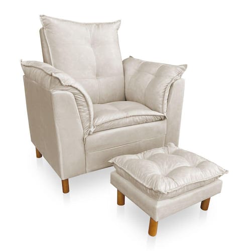 Poltrona de Amamentação com Puff Laura Suede - Pallazio - Bege