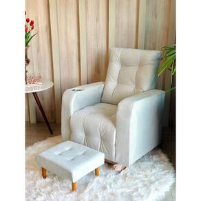 O puff completa a experiência como um apoio precioso para as pernas — detalhe que transforma minutos em descanso real. Resultado: uma cadeira pensada para ser confortável e segura, bonita o suficiente para ficar e afetiva o bastante para virar memória.