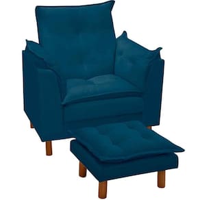 Poltrona de Amamentação com Puff Veludo Azul Marinho - Casa Chick -