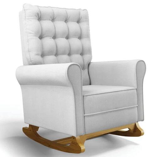 Uma Poltrona de Balanço é feita com materiais de alta qualidade, estrutura em madeira de eucalipto, o tecido linho macio e resistente, percintas elásticas no assento e encosto, e a espuma D23 a densidade ideal para o seu conforto, base em madeira com um lindo design e balanço suave, que ajuda a relaxar e a embalar o sono do seu bebê. A Poltrona de Amamentação, possui um design moderno e sofisticado, com detalhes em botonê revestido no encosto, que dão um toque de charme e elegância ao ambiente.