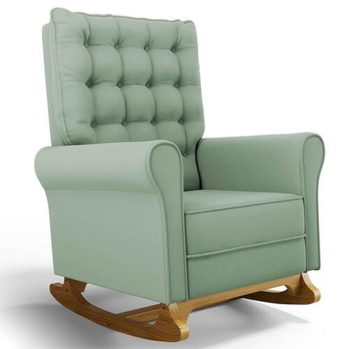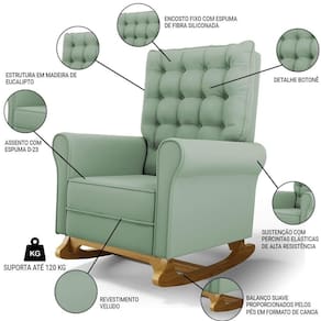 O móvel ideal para você que procura conforto, qualidade e sofisticação. Confira a Poltrona de Amamentação e Descanso Base Madeira Com Balanço Brenda G05 Veludo Verde, da Mpozenato!