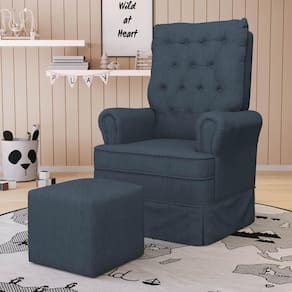 O móvel ideal para você que procura conforto, qualidade e sofisticação. Confira a Poltrona de Amamentação e Descanso com Balanço e Puff Laís G05 Linho Azul, da Mpozenato!