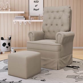 O móvel ideal para você que procura conforto, qualidade e sofisticação. Confira a Poltrona de Amamentação e Descanso com Balanço e Puff Laís G05 Veludo Bege, da Mpozenato!