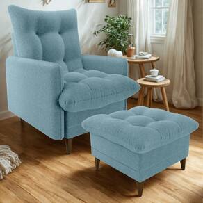 Conjunto Poltrona com Puff Montreal combina conforto e funcionalidade, composto por duas peças ideais para momentos de descanso ou amamentação. A poltrona conta com sistema reclinável de dois estágios (modo leitura e descanso), estrutura em madeira de Eucalipto de reflorestamento, reforçado com precintas elásticas. O assento e encosto são preenchidos com uma combinação de fibra siliconada e flocos de espuma (assim como o Puff), enquanto as braças são em espuma D23, o revestimento em tecido Bouclé (macio, encorpado, com visual moderno e aconchegante). Os pés também em madeira completam, suportando até 110 kg por assento. Este móvel chegará em sua casa separado em 01 volume.