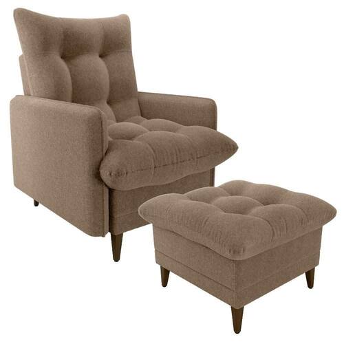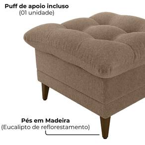 Conjunto Poltrona com Puff Montreal combina conforto e funcionalidade, composto por duas peças ideais para momentos de descanso ou amamentação. A poltrona conta com sistema reclinável de dois estágios (modo leitura e descanso), estrutura em madeira de Eucalipto de reflorestamento, reforçado com precintas elásticas. O assento e encosto são preenchidos com uma combinação de fibra siliconada e flocos de espuma (assim como o Puff), enquanto as braças são em espuma D23, o revestimento em tecido Bouclé (macio, encorpado, com visual moderno e aconchegante). Os pés também em madeira completam, suportando até 110 kg por assento. Este móvel chegará em sua casa separado em 01 volume.