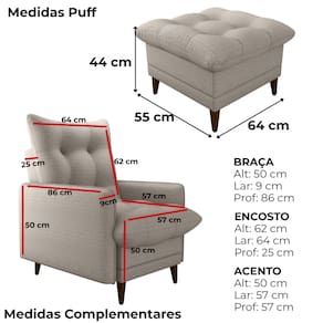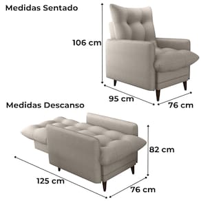Conjunto Poltrona com Puff Montreal combina conforto e funcionalidade, composto por duas peças ideais para momentos de descanso ou amamentação. A poltrona conta com sistema reclinável de dois estágios (modo leitura e descanso), estrutura em madeira de Eucalipto de reflorestamento reforçado com precintas elásticas, assento e encosto preenchidos com fibra siliconada e flocos de espuma (assim como o Puff), braças em espuma D23 E revestidos em tecido Plano Milenum (linho misto: resistente, levemente texturizado e de visual contemporâneo). Os pés também em madeira, suportando até 110 kg por assento. Este móvel chegará em sua casa separado em 01 volume.
