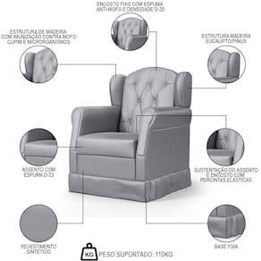 Sistema de Montagem: O produto é enviado montado. Conteúdo da Embalagem: 1 Poltrona, 1 Puff. Volumes: 1 Volume. Garantia do Fabricante: 90 dias contra defeito de fabricação. Recomendação de Limpeza: Utilize pano levemente úmido.
