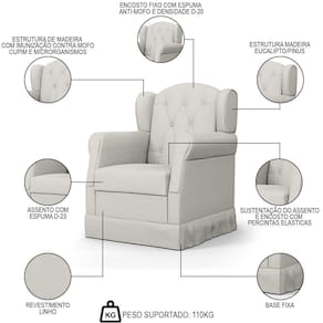 A Poltrona de Amamentação Fixa Letícia Linho Off White - Phoenix Baby é a escolha perfeita para as mamães que buscam conforto e praticidade durante a amamentação. Fabricada com madeira de eucalipto de reflorestamento, ela é resistente e durável, além de ser ecologicamente correta. A poltrona conta com percintas elásticas, que oferecem maior conforto e durabilidade, e sua estrutura de madeira é imunizada contra mofo, cupim e microrganismos, garantindo que ela dure por muito tempo. Com um design moderno e elegante, a Poltrona de Amamentação Fixa Letícia é a escolha perfeita para qualquer ambiente, seja no quarto do bebê, na sala de estar ou em qualquer outro cômodo. Invista em conforto e qualidade para você e seu bebê com a Poltrona de Amamentação Fixa Letícia. Compre já!