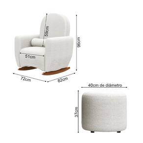 Poltrona de Amamentação Lara com Balanço Pés em Madeira Maciça com Puff Off White