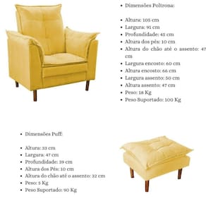 Montagem: A poltrona é entregue já montada, sendo necessário apenas rosquear os pés, tornando o processo de montagem simples e rápido.