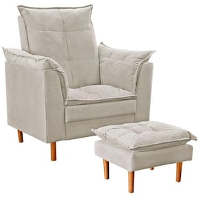 Material dos Pés: Os pés da poltrona e do puff também são feitos de Madeira de Eucalipto, garantindo estabilidade e beleza ao conjunto.