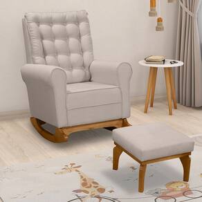 Poltrona De Amamentação Paris Base Balanço C/ Puff Retrô linho - Bege