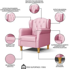 Conteúdo da Embalagem: 1 Poltrona, 4 Pés de Madeira, 1 Puff.
