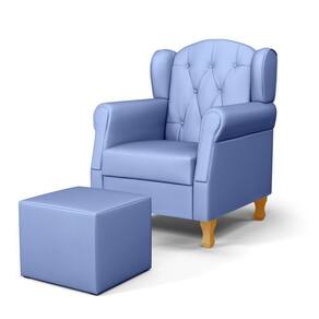 Poltrona De Amamentação Pés Madeira E Puff Lucy P04 Sintético Azul - Mpozenato