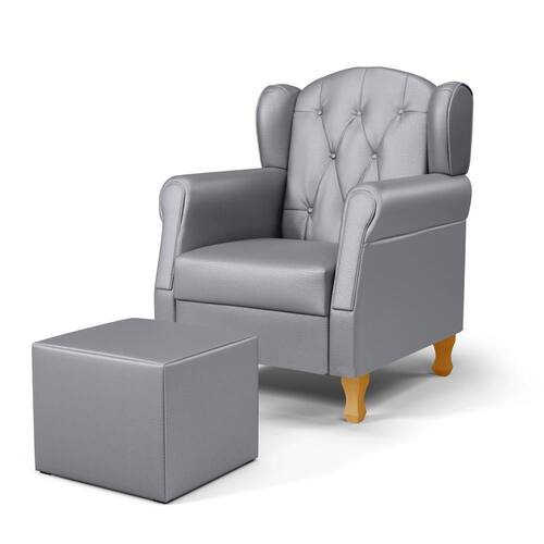 Conteúdo da Embalagem: 1 Poltrona, 4 Pés de Madeira, 1 Puff.