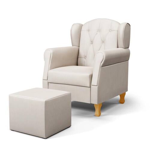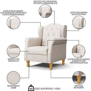 Conteúdo da Embalagem: 1 Poltrona, 4 Pés de Madeira, 1 Puff.