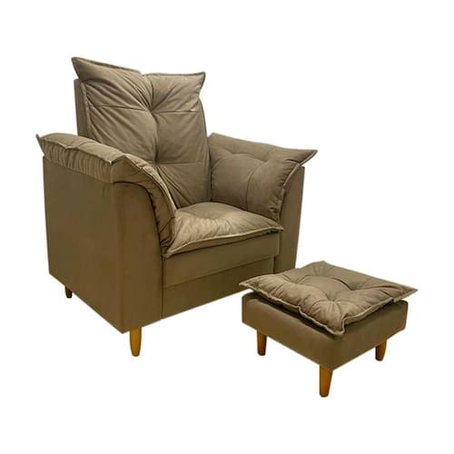 Poltrona De Amamentação + Puff Maite Pés De Madeira - Dritex Cor:suede Cappuccino