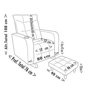 Medidas da Poltrona Comprimento total: 80 cm Profundidade total: 76 cm Altura total: 106 cm Altura do assento: 47 cm Altura do encosto: 65 cm Comprimento do assento: 52 cm