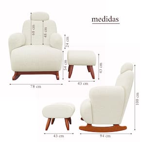 Com balanço suave e estrutura firme, a Aurora entrega uma experiência de descanso equilibrada e silenciosa. O puff que acompanha o conjunto amplia o nível de conforto, permitindo apoio total das pernas, enquanto o revestimento em tecido chenile premium oferece toque macio e visual sofisticado, ideal para compor ambientes elegantes e aconchegantes.