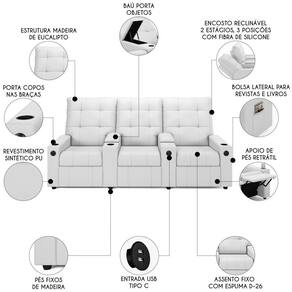 Conheça a Poltrona de Cinema Reclinável 3 Lugares Baú USB Mallie FH9 PU Branco, da Mpozenato projetada para oferecer o máximo conforto e ter seu próprio cinema em casa.