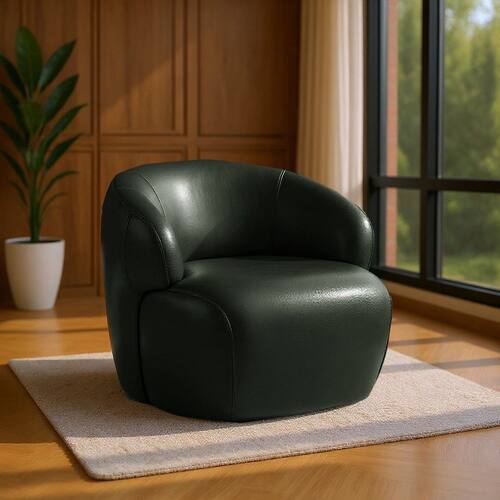 Poltrona de Couro Legítimo Giratória Gana Musgo - Verde